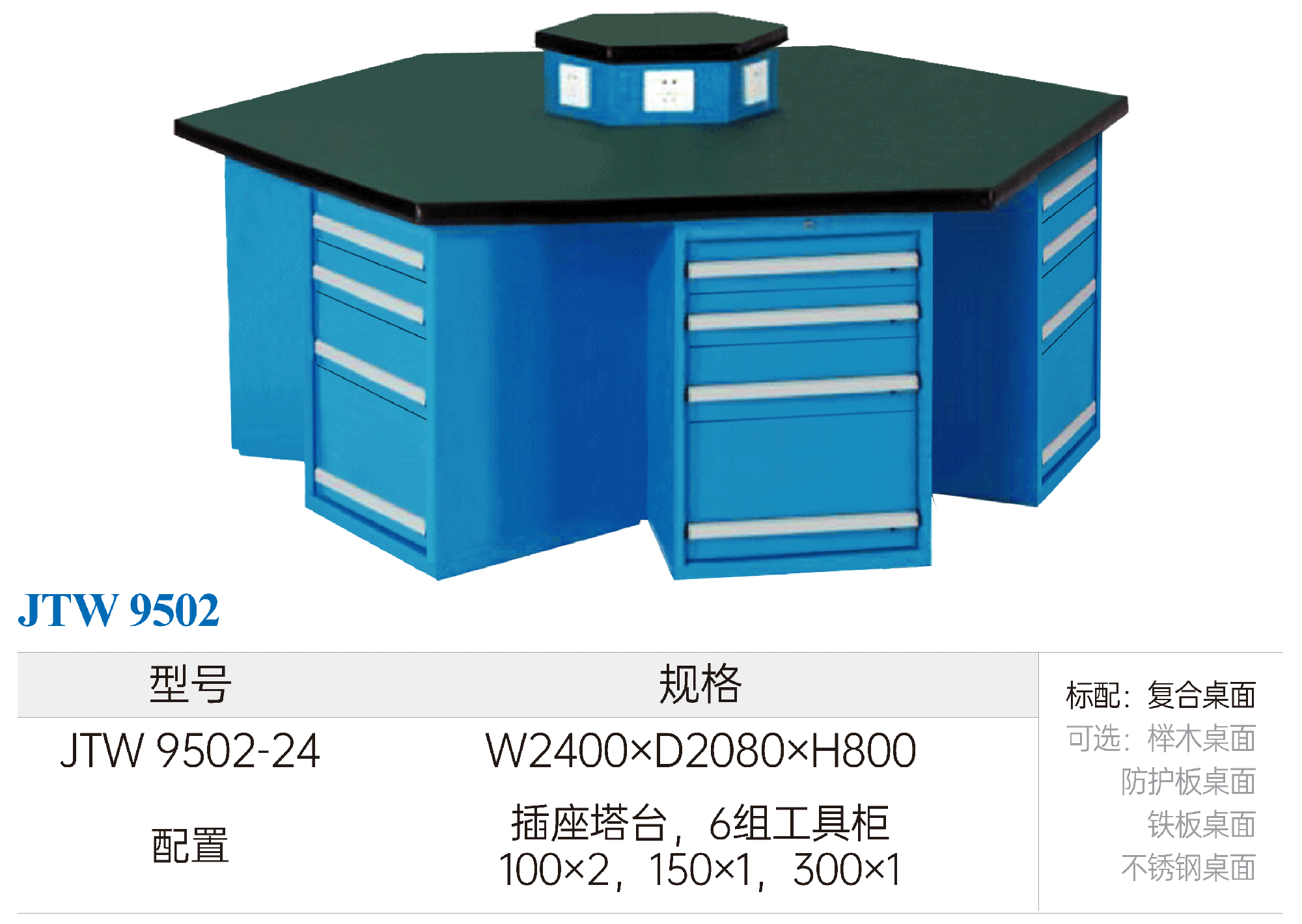 配置:插座塔臺(tái),6組工具柜 ?100×2,150×1,300×1
