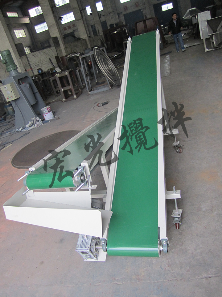 皮帶輸送機(jī)又稱膠帶輸送機(jī),輸送帶根據(jù)摩擦傳動(dòng)原理而運(yùn)動(dòng),適用于輸送堆積密度小于1.67/噸/立方米,易于掏取的粉狀、粒狀、小塊狀的低磨琢性物料及袋裝物料,如煤、碎石、砂、水泥、化肥、糧食等。膠帶輸送機(jī)可在環(huán)境溫度-20℃至+40℃范圍內(nèi)使用,被送物料溫度小于60℃。其機(jī)長(zhǎng)及裝配形式可根據(jù)用戶要求確定,傳動(dòng)可用電滾筒,也可用帶驅(qū)動(dòng)架的驅(qū)動(dòng)裝置。
