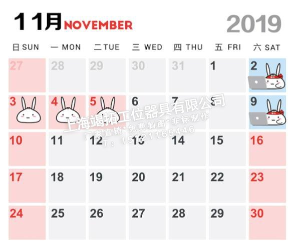 相應將11月2日(周六)、11月9日(周六)調(diào)整為工作日。上海竭拓工位器具有限公司車間生產(chǎn)將做相應安排調(diào)整希望客戶相互理解。